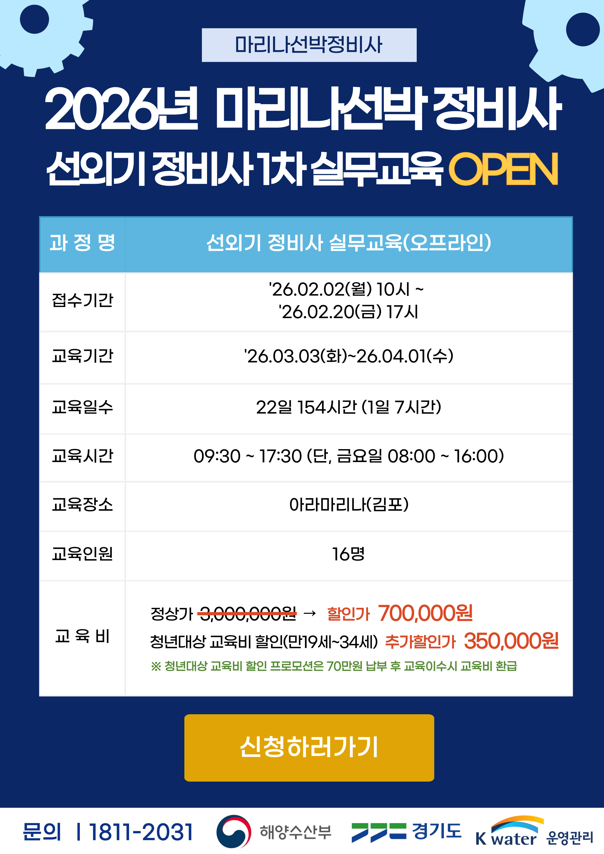 자격교육 과정은 선외기 정비사 과정, 선내기 정비사 과정, FRP선체 정비사 과정이 있습니다.